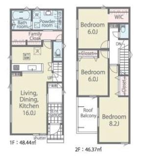 3LDK、2階建て、ファミリークローク、ウォークインクローゼット付き!