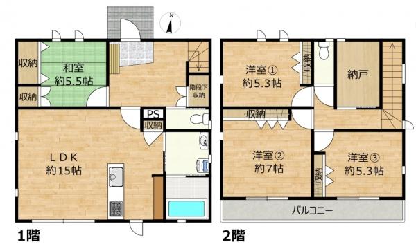 | 築年月 | 2008年3月築 | 間取り | 4LDK (LDK15/和室5.5/洋室7/洋室5.3/洋室5.3) | ||