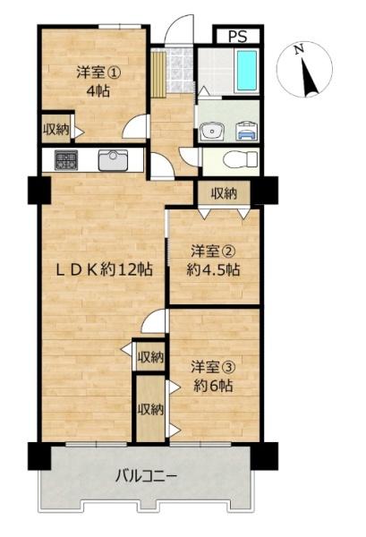 間取り 3LDK (LDK12/洋室6/洋室4.5/洋室4)